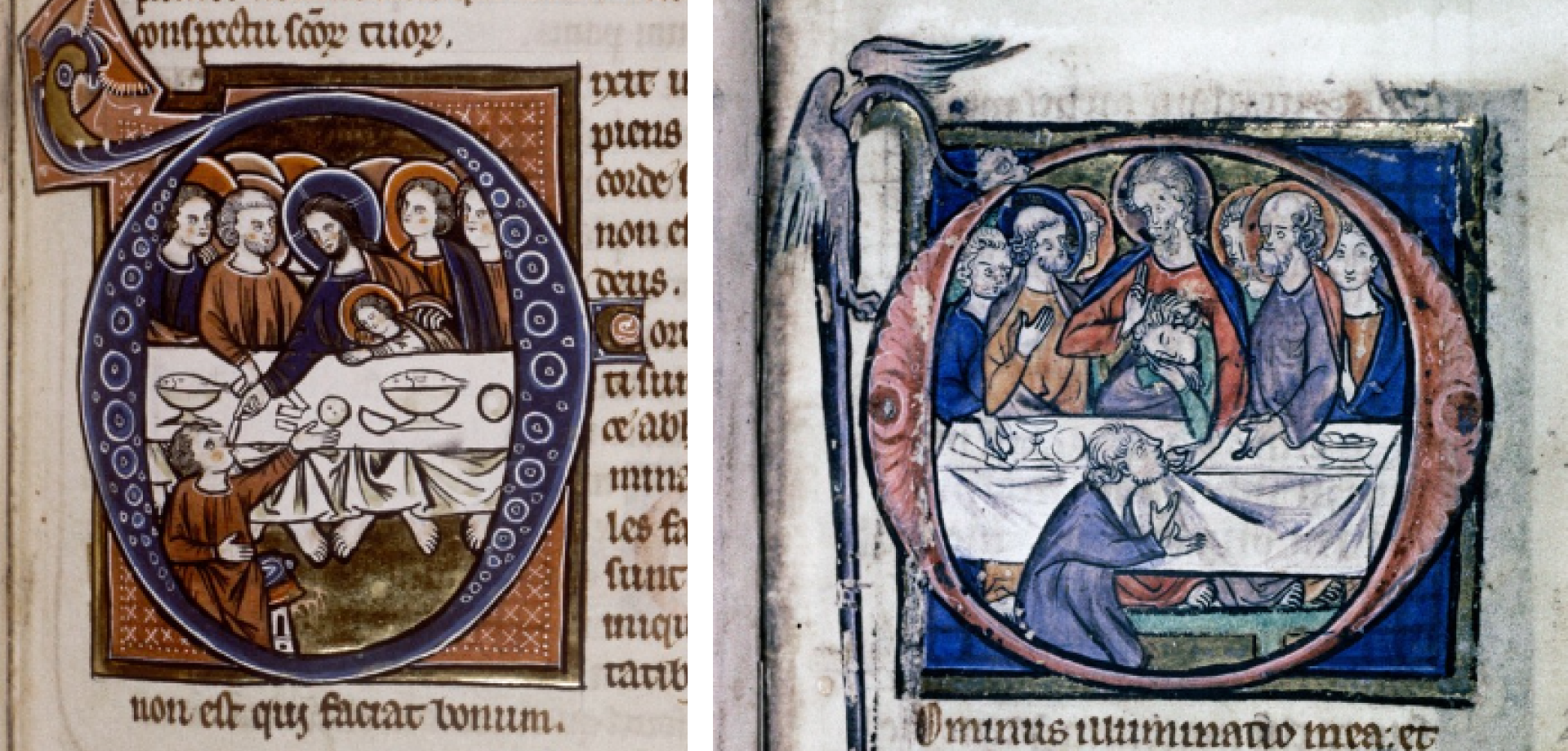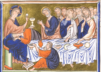 1. Общее количество участников Общее количество участников обычно достигает тринадцать человек (сам Христос и двенадцать апостолов), однако в редких случаях их количество может сокращаться до четырех – девяти, что легко объясняется размерами самой сцены. Так, в пятичастном диптихе из сокровищницы Миланского собора (V в.) и Суассонском Евангелии (827 г., MS. lat. 8850, fol. 178r, Французская национальная библиотека, Париж) за столом восседают четыре человека. В Евангелии Августина Кентерберийского (VI в., fol. 125r, Кристи-Колледж, Кембридж) и Сакраментарии Дрого (850 г., MS. lat. 9428, fol. 44v, Французская национальная библиотека, Париж) количество участников – девять.