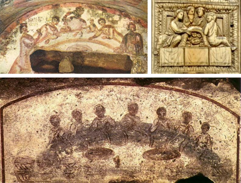 Самым ранним вариантом изображения стола, известным с V в. (Пятичастный диптих; Сант-Аполлинаре-Нуово; Россанский кодекс), является стол-сигма, пришедший из катакомбных фресок (см., нап., катакомбы свв. Петра и Марцеллина, III – IV вв.). Участники обычно изображаются возлежащими полукругом. Причем Христос размещается у левого края стола, Иуда – у противоположного (Россанский кодекс), о положении апостолов Петра и Иоанна можно лишь догадываться – чаще всего Пётр показан рядом с Господом, по левую руку от Него (Сант-Аполлинаре-Нуово; Россанский кодекс).
