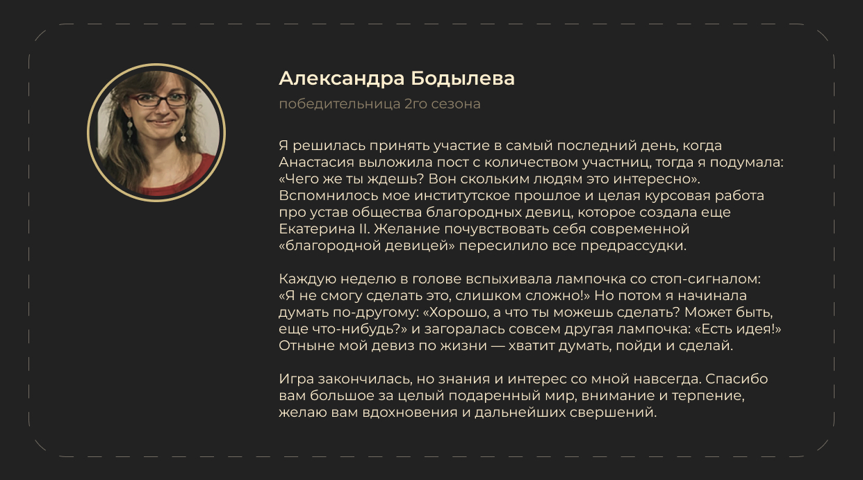 На выполнение заданий тебе потребуется где-то полчаса в день в течение недели. Но здесь все зависит от того, насколько глубоко ты хочешь погрузиться в изучение темы. Могу сказать, что участвует довольно много молодых мам, которые, например, не могут оставить малыша надолго. Соответственно, все задания построены таким образом, что при внесении определенной доли креатива их можно выполнять не отходя далеко от дома. И ты в следующем туре!